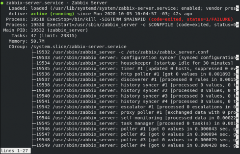 Dec 05 132745 server systemd1. Failed to start Zabbix Server. 2444 codeexited status1FAILURE Mar 16 235335 briskNOC systemd1.